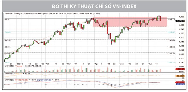 Nhìn chung, xu hướng vận động ngắn hạn của VN-Index chưa thay đổi. Diễn biến rung lắc có thể tiếp diễn để kiểm định lại vùng hỗ trợ 1.250 - 1.270 điểm. Nếu vùng hỗ trợ này không bị vi phạm thì chỉ số sẽ củng cố hoạt động chinh phục ngưỡng cản 1.300 điểm một lần nữa.