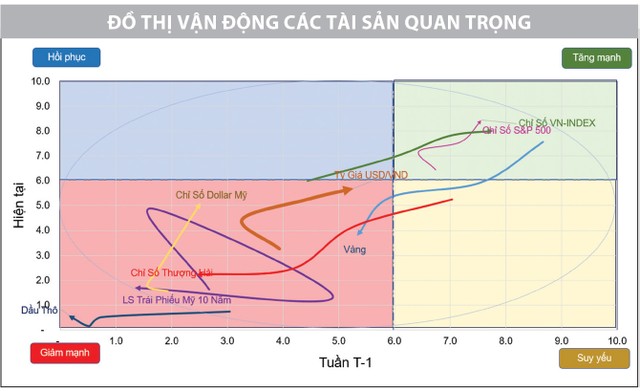 Trong khi đó, vận động của các loại tài sản cho thấy, lợi suất trái phiếu chính phủ Mỹ ghi nhận giảm trở lại, với lợi suất trái phiếu kỳ hạn 10 năm dưới 4,3%, sau khi đầu tuần ở mức gần 4,5%, đây là phản ứng tích cực sau khi các báo cáo lạm phát mới nhất làm giảm áp lực tăng lên lợi suất. Chỉ số USD (DXY) duy trì ổn định và giá vàng quay đầu đi vào vùng giảm mạnh. Nhìn chung, vận động này vẫn đang hỗ trợ cho thị trường chứng khoán toàn cầu duy trì đà tăng và sức mạnh tích lũy ở vùng tăng mạnh. Tâm lý đầu tư đang hứng khởi trước các thông tin vĩ mô tích cực, khiến chỉ số rủi ro VIX nằm yên ở góc xa trong vùng giảm mạnh.