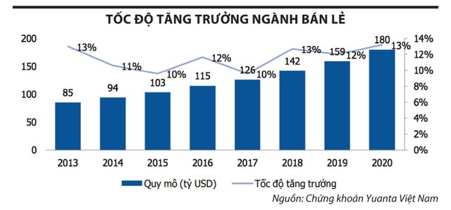 Mảng bán lẻ tiêu dùng tại Việt Nam thu hút nhiều nhà đầu tư trong và ngoài nước như ThaiBev, Central Group, Lotte Mart, Aeon Mall, Masan Group, MWG..., nhờ dân số đông (gần 100 triệu người), tiêu dùng hộ gia đình chiếm 70 - 80% quy mô GDP, kinh tế tăng trưởng cao, thu nhập bình quân đầu người liên tục tăng (riêng năm 2021 là 3.560 USD, giảm 1 USD so với năm 2020), dự báo đến năm 2025 đạt 5.000 USD...