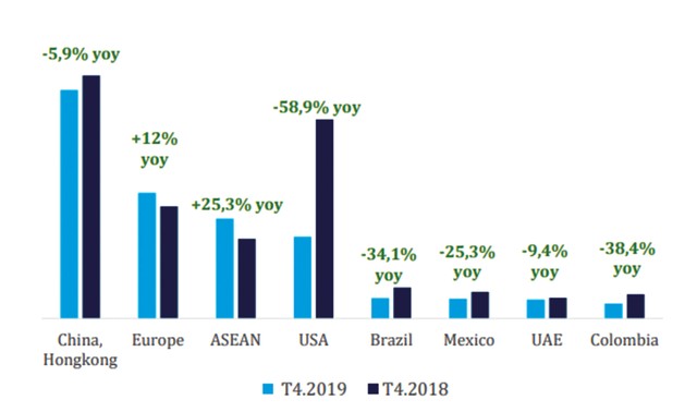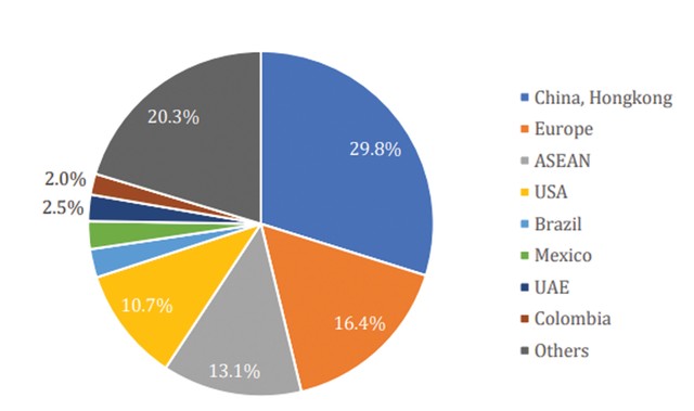 Top thị trường xuất khẩu theo thị phần.