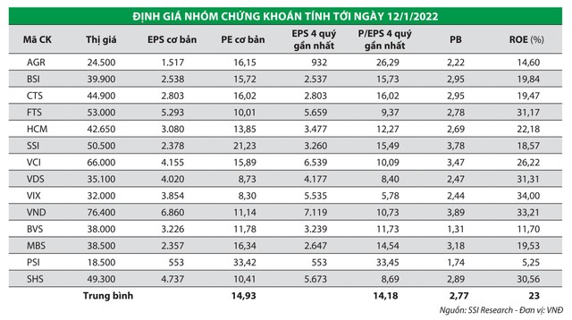 Mặc dù hoạt động kinh doanh tích cực nhưng nhóm cổ phiếu chứng khoán có xu hướng đi xuống từ cuối tháng 11/2021 tới nay, và đặc biệt đà giảm giá đang diễn ra lại tạo ra mặt bằng giá hấp dẫn hơn cho nhóm này.