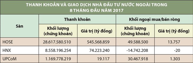 Theo thông tin từ các công ty chứng khoán, dòng vốn nước ngoài vẫn đang chảy vào thị trường chứng khoán Việt Nam. Tuy chưa phải là các quỹ lớn mở tài khoản giao dịch, nhưng một số công ty quản lý quỹ có quy vừa và nhỏ đã mở tài khoản giao dịch, hoặc giao dịch ủy thác cho khách hàng. Đây là tín hiệu khả quan cho thị trường.