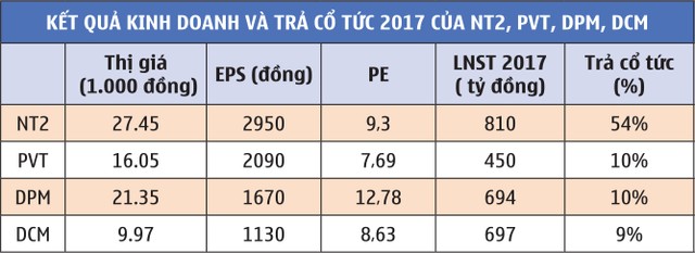 Trong khi đó, những nhà đầu tư thận trọng và có xu hướng phòng thủ trong năm 2019 có thể hướng tới nhóm cổ phiếu đầu tư trung và dài hạn hưởng cổ tức của ngành dầu khí như NT2, PVT, DPM và DCM.