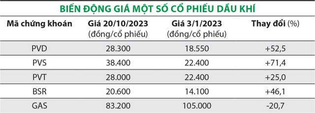 Đối với Tổng công ty Khí Việt Nam - CTCP (PVGas, mã chứng khoán GAS), giá dầu thô tăng sẽ hỗ trợ giá bán khí ở mức cao và kết quả kinh doanh năm 2023 giảm ít hơn so với dự kiến trước đó. Cụ thể, lợi nhuận sau thuế năm 2023 của