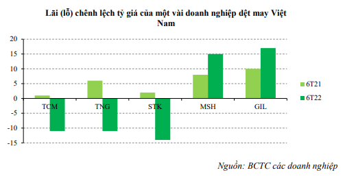 Điều này cũng bị tác động mạnh từ biến động tỷ giá khi các doanh nghiệp dệt may Việt Nam chủ yếu đều nhập khẩu nguyên vật liệu và xuất khẩu hàng may mặc. Trong bối cảnh tỷ giá các nước biến động trái chiều như hiện nay, lãi lỗ từ tỷ giá nhìn chung tăng mạnh hoặc giảm mạnh tùy vào cơ cấu xuất nhập khẩu đặc thù của từng doanh nghiệp cũng như tỷ lệ nợ vay nước ngoài.