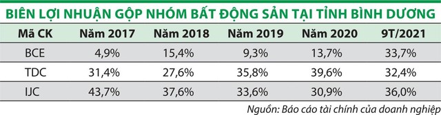 Điểm đáng lưu ý, trong nhiều năm trở lại đây, các doanh nghiệp bất động sản tại Bình Dương liên tục duy trì biên lợi nhuận cao trên 30%. Trong đó, riêng tại BCE từ giai đoạn 2017 - 2020, biên lợi nhuận duy trì mức biên lợi nhuận thấp do Công ty chủ yếu thực hiện xây dựng cho các chủ đầu tư.