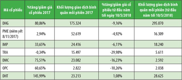 Nếu nắm giữ cổ phiếu nhóm này từ đầu năm đến cuối năm, nhà đầu tư có thể có được mức sinh lời rất hấp dẫn. Chẳng hạn, thị giá cổ phiếu DHG ghi nhận mức tăng gần 90%; IMP tăng 33,65%; DMC leo dốc hơn 75,5%; DHT 146%; OPC tăng gần 61%...