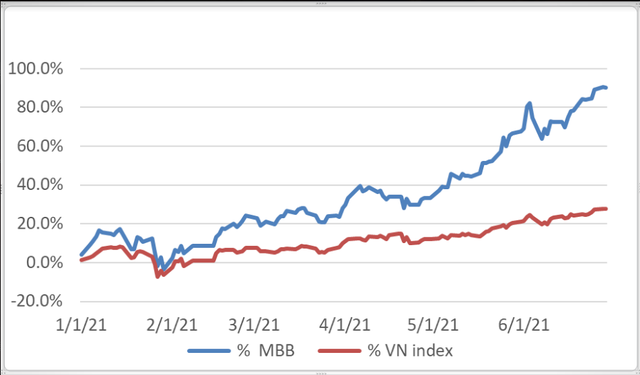 Trong báo cáo ước tính kết quả kinh doanh quý II/2021 công bố ngày 5/7/2021, Công ty chứng khoán SSI đánh giá, lợi nhuận trước thuế trong quý II/2021 của MB được kỳ vọng sẽ đạt 4 - 4,5 nghìn tỷ đồng, tăng 37 - 50% so với cùng kỳ do tăng trưởng tín dụng và tiền gửi của ngân hàng mẹ tính đến hết tháng 5 đạt mức 10%, tăng 6% so với đầu năm 2021. Trong khi đó, nợ xấu được kiểm soát (dưới 1% tại ngân hàng mẹ) và NIM tiếp tục tăng.