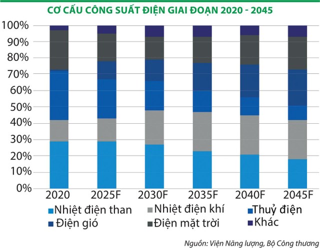 Năm 2020, thủy điện là loại hình phát điện có công suất lớn nhất, chiếm 30% tổng công suất toàn hệ thống; nhiệt điện than và nhiệt điện khí chiếm lần lượt 29% và 15% tổng công suất.