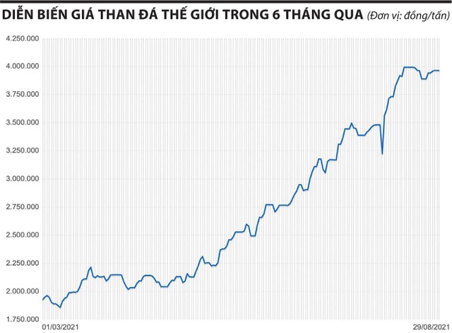 Trong 6 tháng trở lại đây, giá than tăng 52,6%, đạt gần 4 triệu đồng/tấn. Giá than tăng vọt một phần là do nhu cầu than gia tăng ở khắp nơi trên thế giới, đặc biệt là Trung Quốc, Nhật Bản, Hàn Quốc.