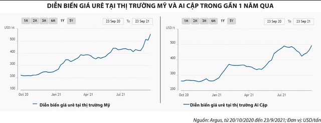 Ở Đông Nam Á, giá urê kết thúc tuần giao dịch 16/9/2021 có giá 427 - 435 USD/tấn FOB thì khi kết thúc tuần 23/9/2021 đạt 503 - 527 USD/tấn FOB, tức tăng bình quân 84 USD/tấn trong 1 tuần. Đây là mức giá kỷ lục trong 10 năm trở lại đây.