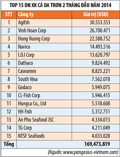 Trong 2 tháng đầu năm 2014, tổng giá trị xuất khẩu cá tra sang thị trường Mỹ đã tăng 32%. Thị trường Mỹ đứng từ vị trí thứ 2 sau EU đã vươn lên vị trí dẫn đầu trong các thị trường nhập khẩu cá tra lớn nhất của Việt Nam, chiếm hơn 22% tổng sản lượng xuất khẩu.
