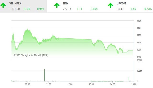 Bước sang phiên giao dịch chiều, áp lực bán gia tăng khiến thị trường trở nên phân hóa. Trên bảng điện tử, số mã tăng và giảm khá cân bằng nhau, tuy nhiên, nhờ sự hỗ trợ khá tốt từ các mã lớn, trong đó đóng góp chính là VCB, đã giúp VN-Index có thêm phiên tăng điểm với thanh khoản khá sôi động, chỉ thua phiên giao dịch cuối tuần trước ngày 2/6 tính trong 6 tháng đầu năm 2023.