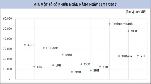 Khoảng cách giá cổ phiếu ngân hàng ngày một nới rộng