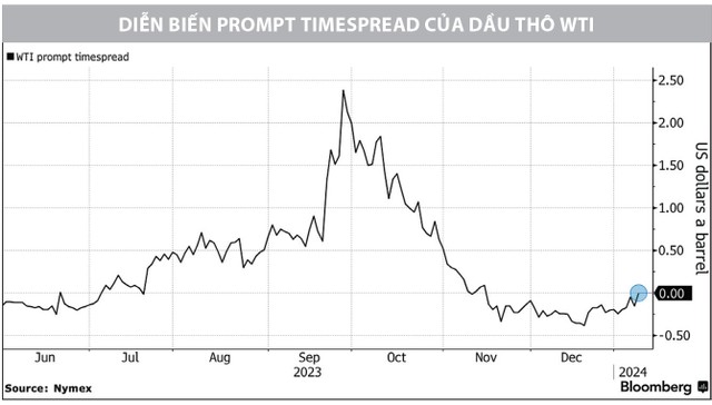 Trong một diễn biến khác, thị trường dầu thô cho thấy các dấu hiệu tăng giá trở lại, khi mức chênh giá của 2 hợp đồng đáo hạn cách nhau 1 ngày (prompt timespread) quay lại mốc cân bằng 0 và chuẩn bị tiến vào giai đoạn “backwardation” - khi giá tương lai gần cao hơn giá tương lai xa - là dấu hiệu thường thấy của một xu hướng tăng trong ngắn hạn. Các nhà đầu tư kỳ vọng, giá dầu sẽ tăng khi nhu cầu đang có dấu hiệu hồi phục và có thể vượt cung khoảng 120.000 thùng/ngày trong năm 2024. Những diễn biến mới của giá dầu sẽ tạo áp lực lên lạm phát và khả năng sớm giảm lãi suất của Fed.