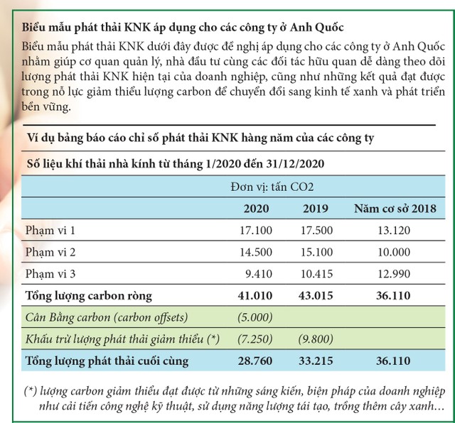 Trong “Bộ Tiêu chuẩn Báo cáo Phát triển Bền vững Hợp nhất GRI” đã giới thiệu và đào tạo cho các doanh nghiệp Việt Nam, tiêu chuẩn GRI 305 hướng dẫn báo cáo về phát thải KNK dựa theo “Nghị định thư về khí thải nhà kính (GHG)”, mà cụ thể tổng phát thải KNK tại doanh nghiệp có thể được đo lường ở 3 phạm vi: