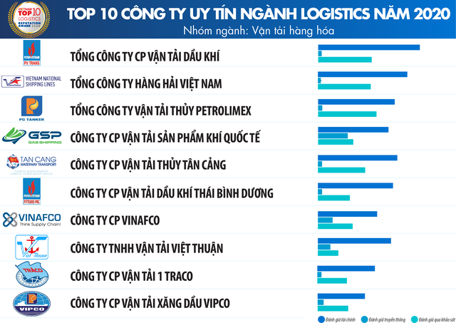 Top 10 Công ty uy tín ngành Logistics năm 2020 - Nhóm ngành: Giao nhận vận tải quốc tế, Kho bãi, Dịch vụ logistics bên thứ 3, thứ 4