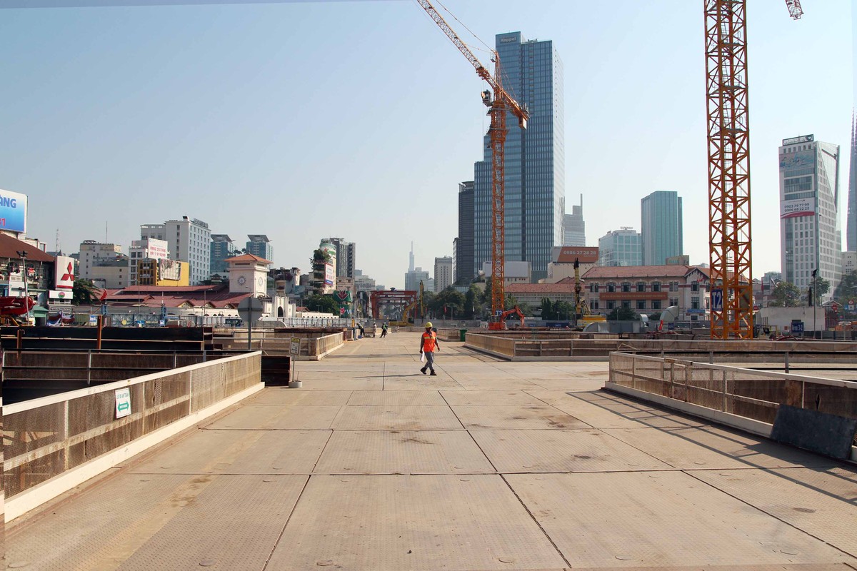 Theo ông Dương Hữu Hòa, Giám đốc dự án tuyến metro số 1, việc đào đất, lắp đặt khung chống gói thầu 1a đã đạt khoảng 90% và thi công xong sàn tạm.