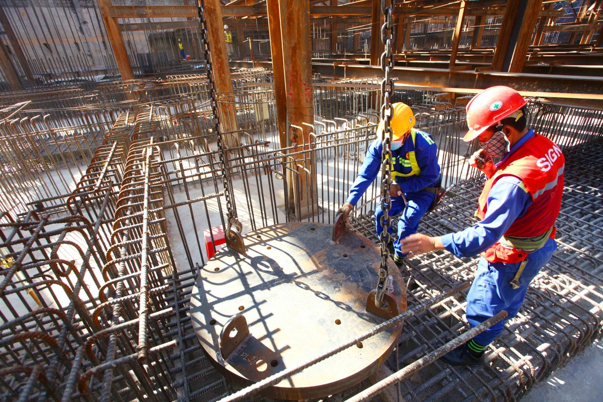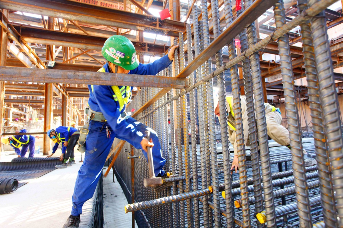 Sau khi khởi động xong, công nhân lập tức bắt tay vào công việc.