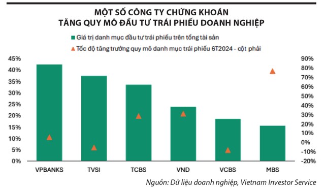 Một số công ty chứng khoán đã có nửa đầu năm 2024 tăng trưởng lợi nhuận khả quan nhờ vào hoạt động cho vay ký quỹ và hoạt động đầu tư khi thị trường cổ phiếu phục hồi. Bên cạnh đó, cùng với sự ấm lên của thị trường trái phiếu, một số công ty đẩy mạnh đầu tư trái phiếu doanh nghiệp.