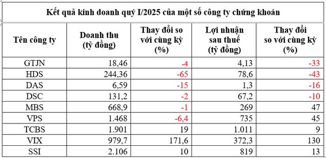 Công ty Chứng khoán VPS cũng báo lợi nhuận sau thuế quý I đạt 735 tỷ đồng, tăng 45% so với cùng kỳ, dù doanh thu đạt 1.468,4 tỷ đồng, giảm 6,4% so với cùng kỳ. Nguyên nhân chính doanh thu đi xuống là do doanh thu mảng môi giới chứng khoán giảm gần 40% về còn 579 tỷ đồng. Đáng chú ý, trong quý I/2025, VPS vẫn tiếp tục đứng đầu thị phần môi giới sàn HOSE.