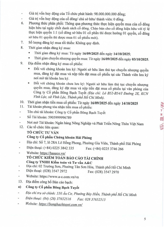 Công ty cổ phần Bông Bạch Tuyết (BBT) thông báo chào bán cổ phiếu ra công chúng