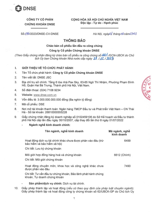 Công ty cổ phần Chứng khoán DNSE thông báo chào bán cổ phần lần đầu ra công chúng