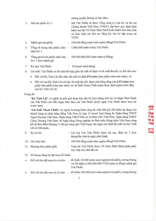 Công ty Cổ phần Chứng khoán Kỹ Thương (TCBS) thông báo chào bán trái phiếu ra công chúng đợt 3 (TCSCPO2325002) theo GCNĐK chào bán số 24/GCN-UBCK do Chủ tịch UBCKNN cấp ngày 22/03/2024