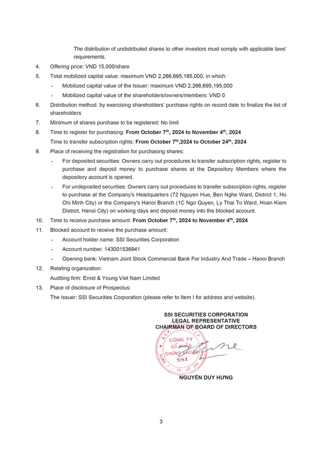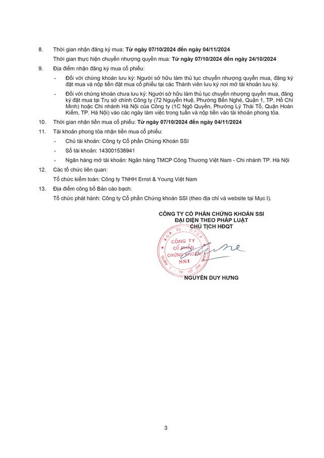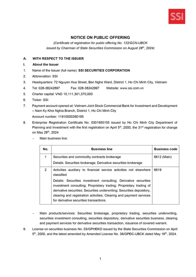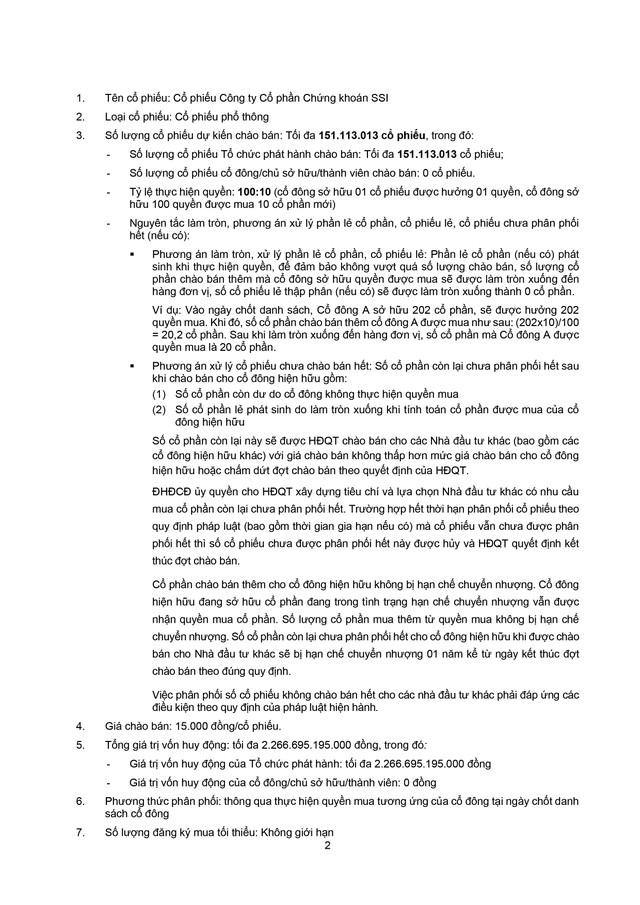 Công ty cổ phần Chứng khoán SSI (SSI) thông báo chào bán cổ phiếu ra công chúng