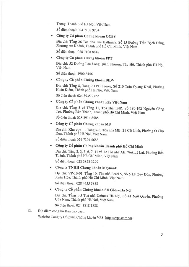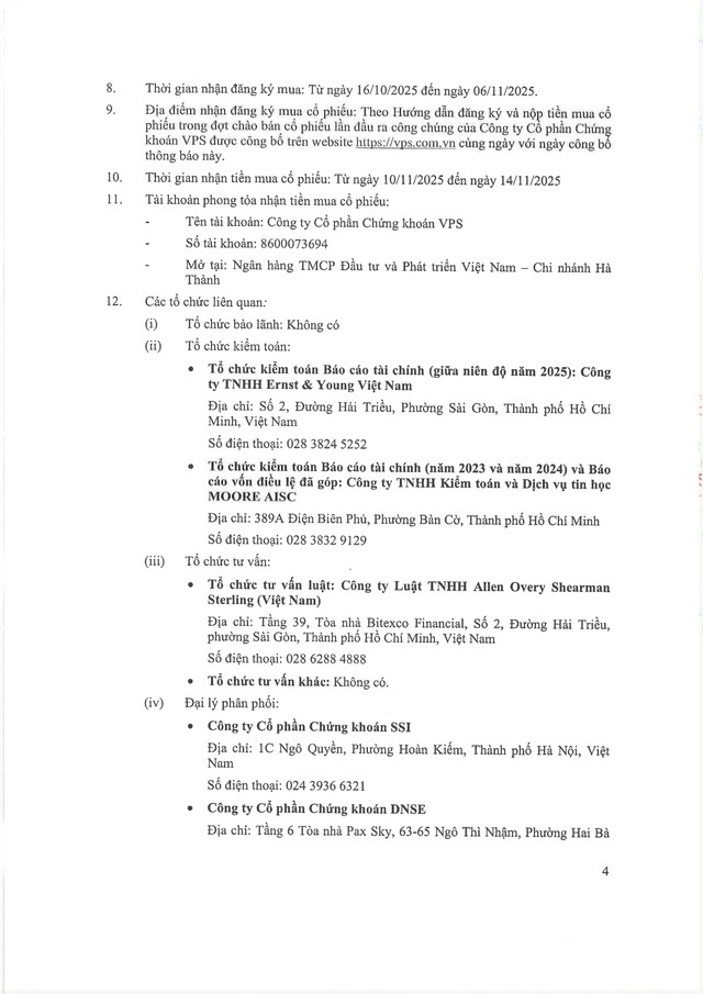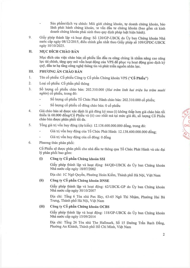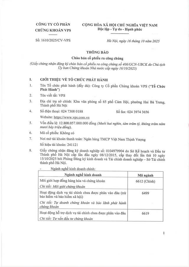 Công ty cổ phần Chứng khoán VPS thông báo chào bán cổ phiếu ra công chúng