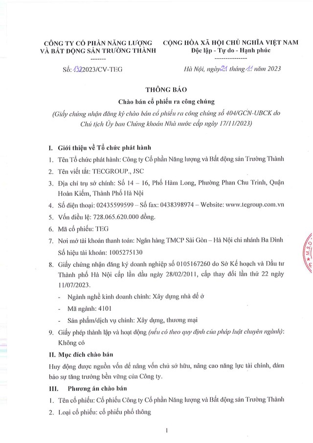 Quý II/2023, lợi nhuận Năng lượng và Bất động sản Trường Thành (TEG) tăng 10,88 lần lên 67,13 tỷ đồng