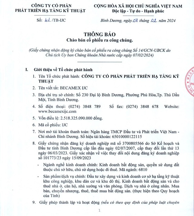 Công ty cổ phần Bảo vệ thực vật 1 Trung ương (BT1) thông báo chào bán cổ phiếu ra công chúng (kỳ 2) 05/11/2025 08:00