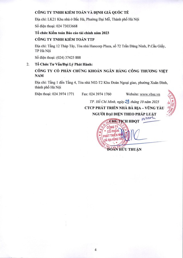 Công ty Cổ phần Phát triển Nhà Bà Rịa - Vũng Tàu (HDC) thông báo chào bán cổ phiếu ra công chúng (kỳ 2 31/10/2025 08:00