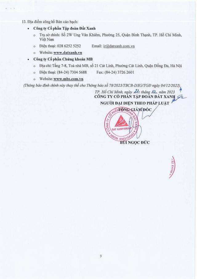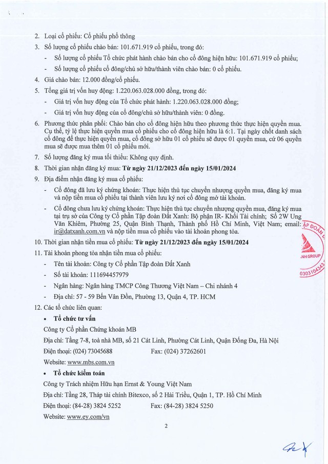Công ty cổ phần Tập đoàn Đất Xanh (DXG) thông báo chào bán cổ phiếu ra công chúng