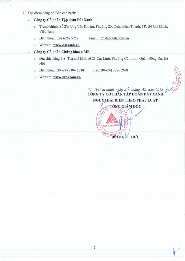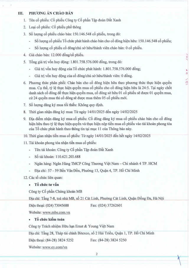 Công ty cổ phần Tập đoàn Đất Xanh (DXG) thông báo chào bán cổ phiếu ra công chúng