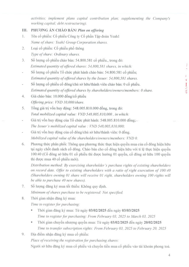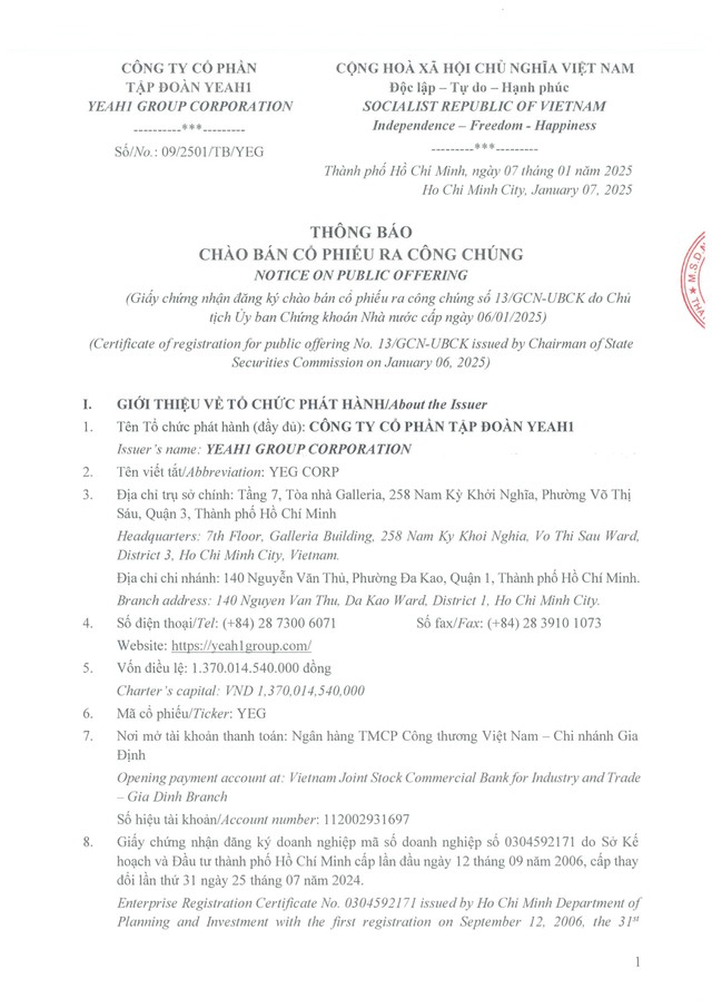 Yeah1 (YEG) lên kế hoạch chào bán 54,8 triệu cổ phiếu cho cổ đông hiện hữu với giá cao hơn thị trường