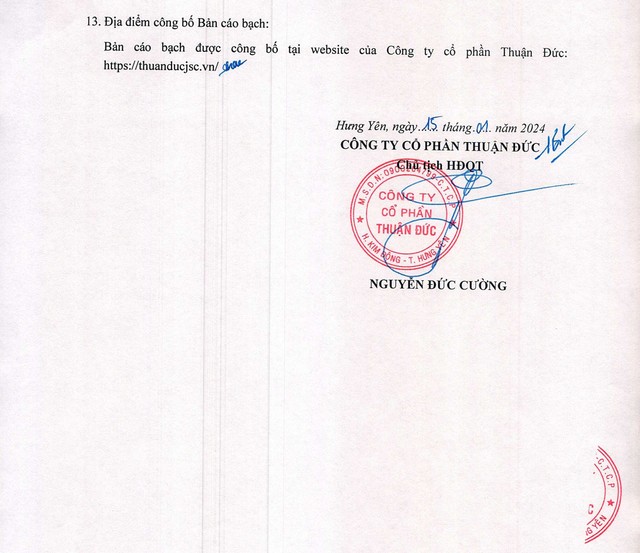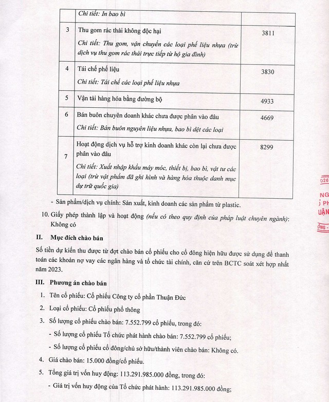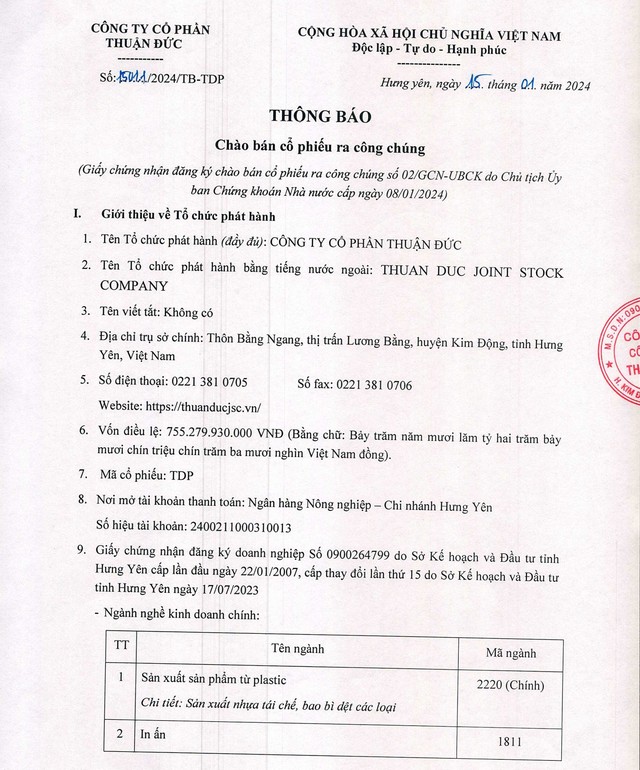 Công ty cổ phần Thuận Đức (TDP) thông báo chào bán cổ phiếu ra công chúng