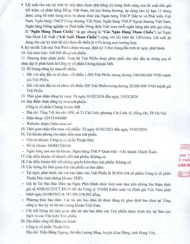 Công ty cổ phần Thuận Đức (TDP) thông báo chào bán trái phiếu ra công chúng