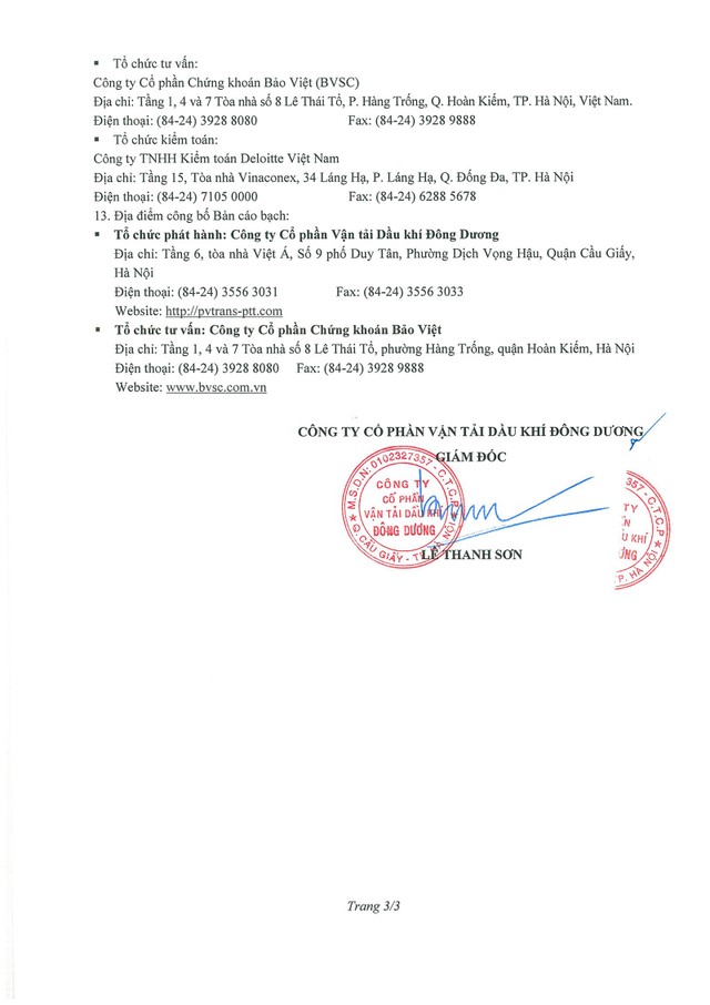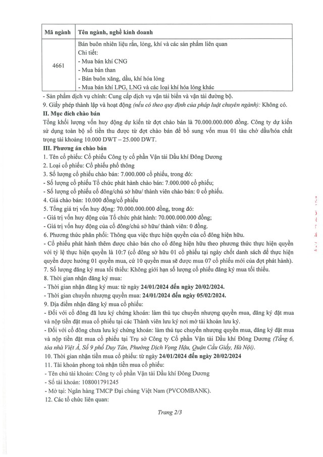 Công ty cổ phần Vận tải Dầu khí Đông Dương thông báo chào bán cổ phiếu ra công chúng