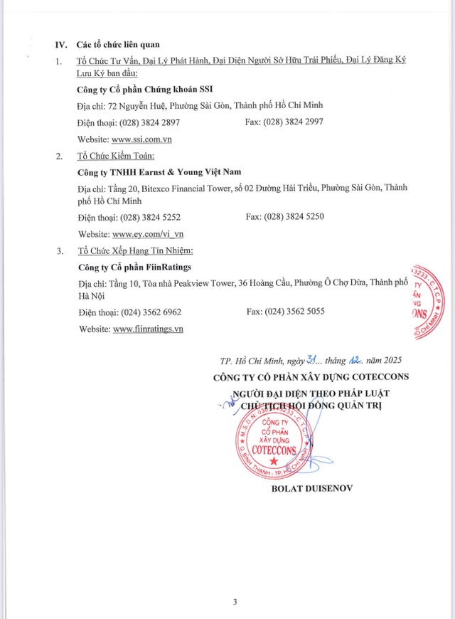 Công ty Cổ phần Xây dựng Coteccons (CTD) thông báo chào bán trái phiếu ra công chúng ( kỳ 1)