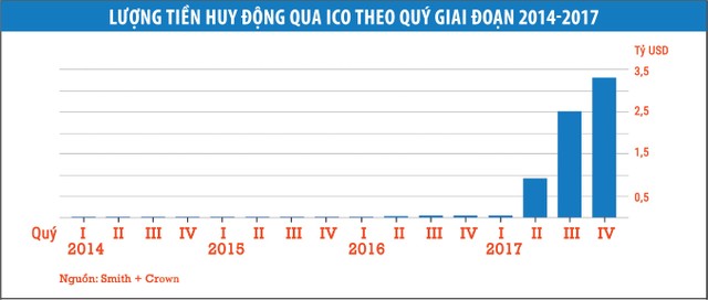 Chỉ trong năm 2017, ICO đã có bước nhảy vọt, trở thành phương thức huy động tài chính được nhiều công ty khởi nghiệp lựa chọn. Theo đó, từ 151 triệu USD huy động bằng hình thức ICO cả 3 năm 2014, 2015 và 2016, sang năm 2017, con số này đã tăng lên 6,8 tỷ USD, theo Hãng nghiên cứu Smith+Crown. Thương vụ đáng chú ý sắp tới là Telegram Inc, ứng dụng mã hóa tin nhắn, đang chuẩn bị huy động ít nhất 1,2 tỷ USD, trở thành thương vụ ICO lớn nhất từ trước tới nay.
