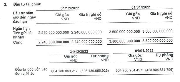 Về hoạt động thoái vốn đầu tư tại doanh nghiệp có vốn góp, trong năm 2022, Công ty đã thoái vốn tại 4 doanh nghiệp với tổng doanh thu thoái vốn đạt 57,44 tỷ đồng.