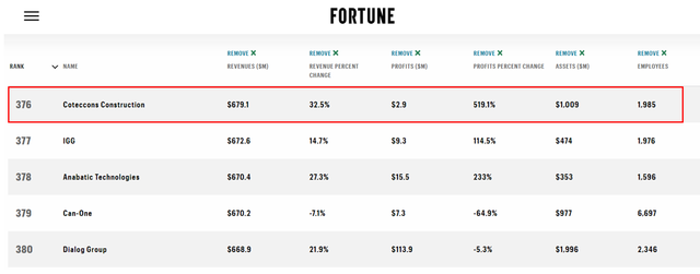 Việc Coteccons là công ty xây dựng lớn nhất về quy mô, góp mặt trong danh sách tái khẳng định vị thế dẫn đầu, đại diện cho ngành xây dựng Việt Nam của mình. Đồng thời cũng khẳng định kết quả kinh doanh ấn tượng và sức mạnh tài chính của Coteccons một cách minh bạch.