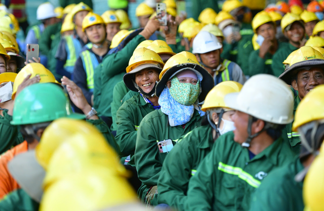 Trên những gương mặt thường ngày được che kín để chống nắng và bụi công trường, hiện lên những nụ cười, ánh mắt rạng ngời…