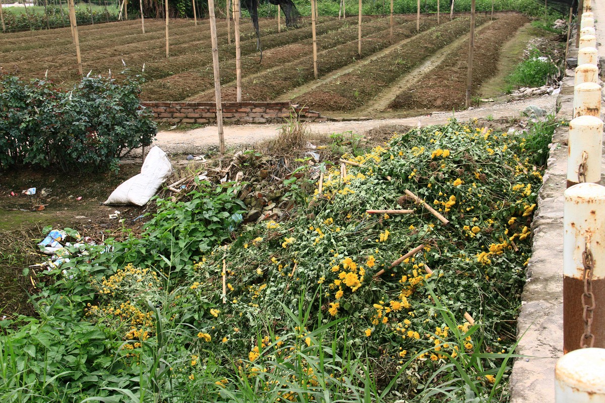 Hoa bị nhổ cả rễ và vứt đầy bên đường.