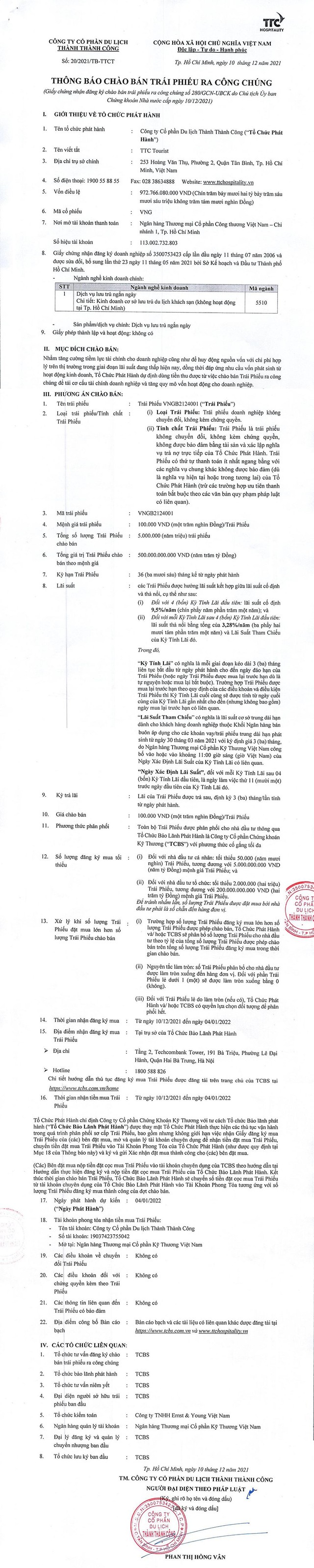 CTCP Du lịch Thành Thành Công thông báo chào bán trái phiếu ra công chúng