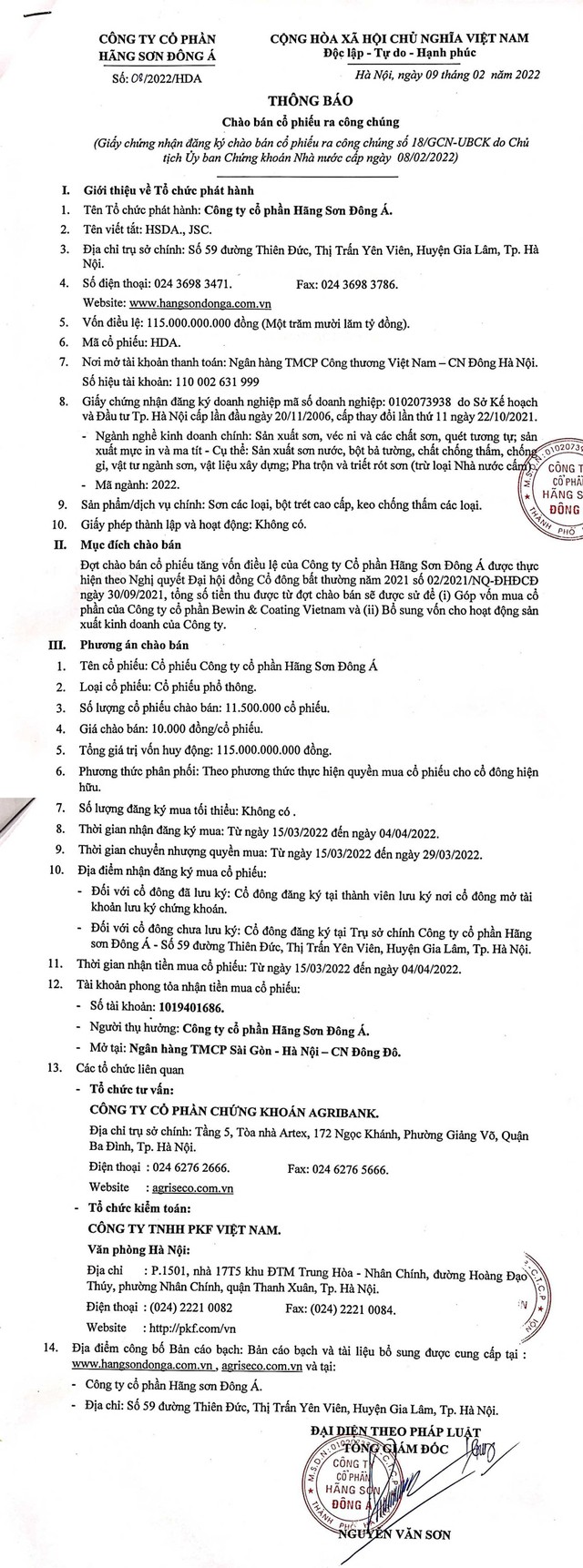 Tổng công ty Đầu tư Phát triển Nhà và Đô thị Nam Hà Nội (NHA) thông báo chào bán cổ phiếu ra công chúng