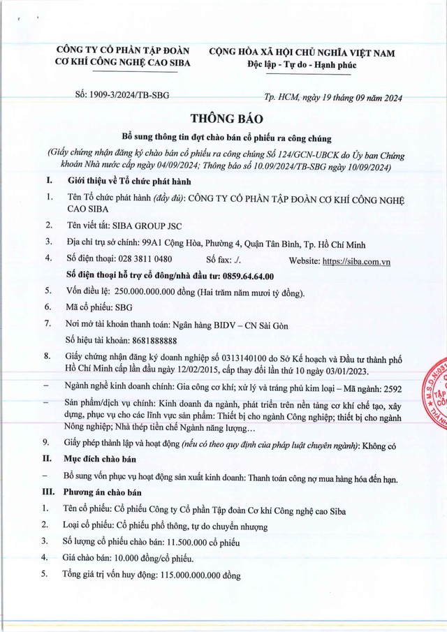 Siba Group (SBG) chấm dứt hoạt động dự án Đầu tư Nhà máy cơ khí tại tỉnh Nghệ An khi kinh doanh đi lùi