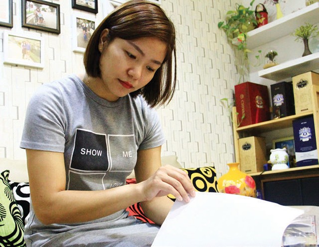 Chị Nguyễn Thúy Vĩnh, ủy viên Ban quản trị bức xúc: “Đã hơn 4 năm chúng tôi dọn về đây ở, nhưng đến nay cũng chỉ là ở tạm, vì chủ đầu tư chưa thể bàn giao nhà chính thức…”.
