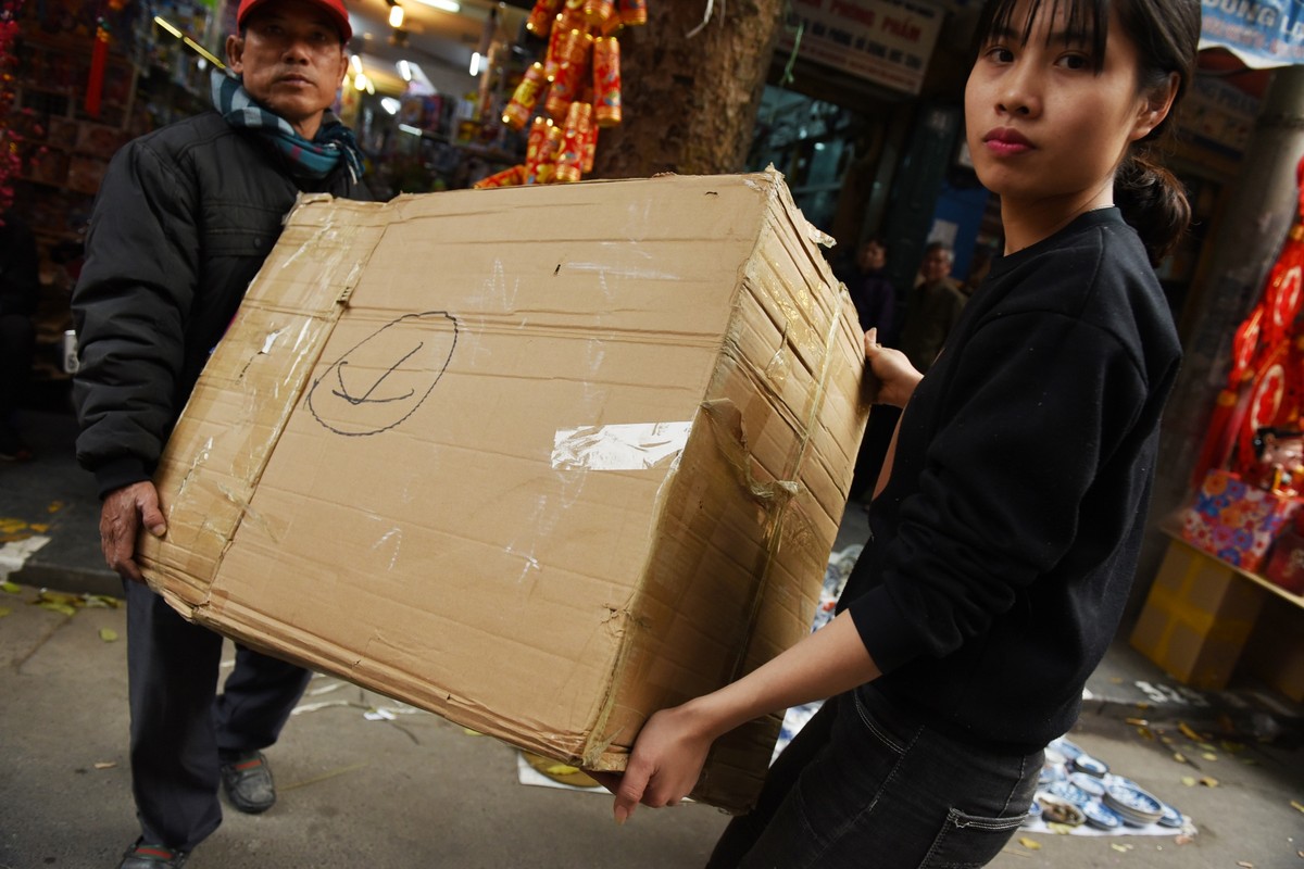 Vì nằm trong khu phố cổ, việc vận chuyển vàng mã chủ yếu cần đến xe máy. Do đó, cảnh xe máy cõng từ 2 đến chục chiếc ô tô là chuyện bình thường.